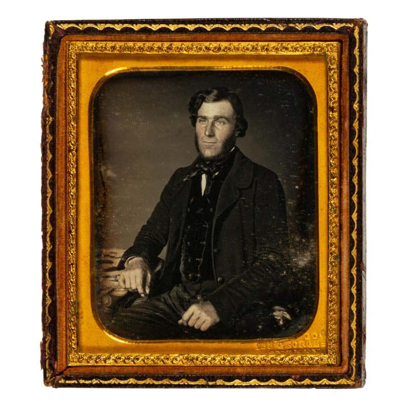 An extremely rare example of a portrait by Sydney daguerreotypist James Gow. The only James Gow daguerreotype we have been able to trace in Australian public collections is the portrait of James Allpress, tipstaff at the Supreme Court, held in the Powerhouse Collection.
