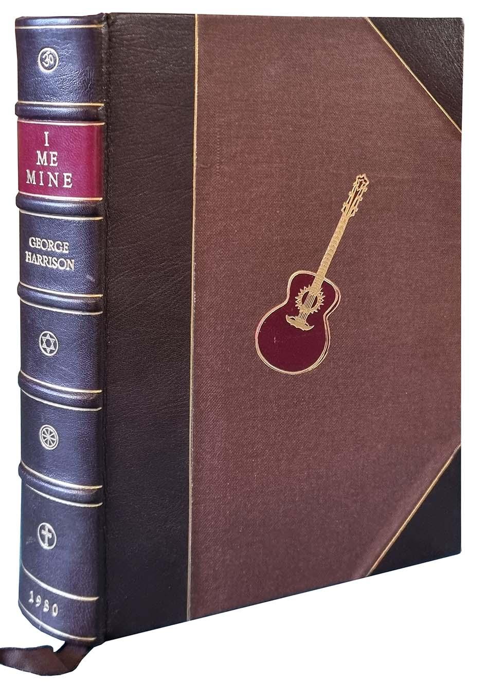 Guildford: Genesis Publication, 1980. Royal octavo. Original half calf (by Zaehnsdorf, London) with gilt onlay on front cover. Spine gilt with raised bands and contrasting morocco title-label. Edges gilt. In slip-case with label on front cover. 2 tipped-in colour portraits, numerous plates one of which is folding, numerous facsimile examples of Harrison's hand-writing and illustrated endpapers. Limited edition of 2000 copies, signed by "George Harrison". Fine and extremely scarce. The lyrics and life of George Harrison, the lead guitarist of one of the most influential bands of all times.