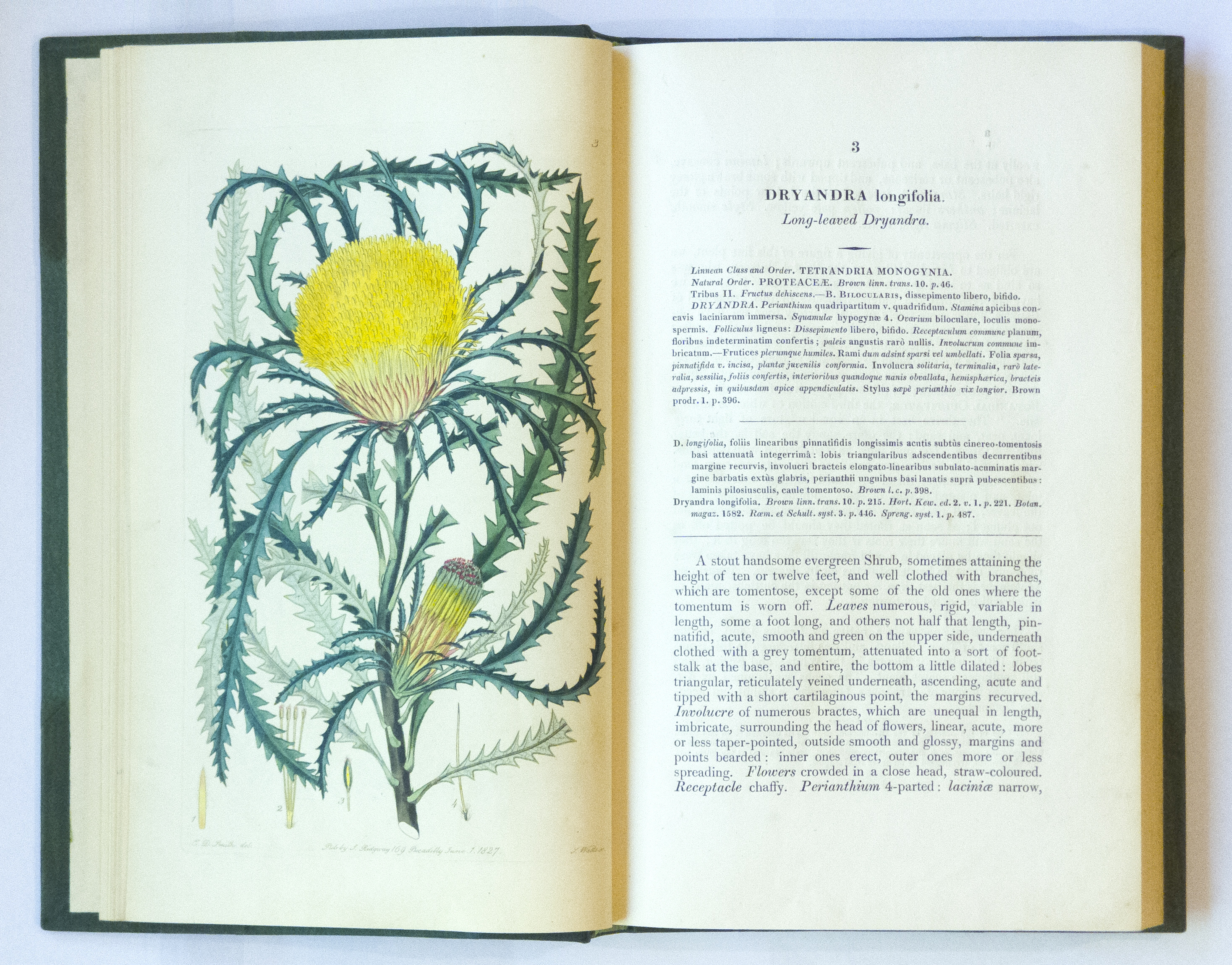 James Sweet's "Flora Australasica" is of the most attractive of all Australian botanical books and the first with illustrations taken from live specimens rather than dried plants or field sketches, the species depicted having been grown from seeds in London nurseries. This experimentation directly resulted from Joseph Banks’s methods and indicates how widely his influence had spread. This was the third illustrated work devoted to the botany of Australia (the first was James Edward Smith’s of 1793, and the second Bauer’s exceptionally rare "Illustrationes Floræ Novæ Hollandiæ" of 1813).